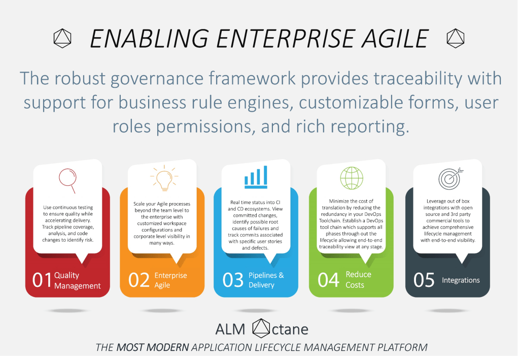 #ALM #Octane is the #Most #Modern Application Lifecyle Management #Platform for #DevOps, Continuous Quality Management & Testing, as well as for Agile Development with #Scrum, #Kanban or #ScrumBan. #Scale to your enterprise without compromising on: