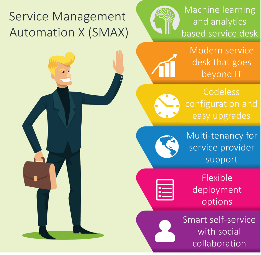 Micro Focus Service Management Automation X (SMAX) provides a digital self-service experience for IT and non-IT services with native mobile applications, virtual agents (bots), social collaboration, and ChatOps, all driven by machine learning, analytics, and automation. The latest SMA release comes with enhancements in areas like smart analytics, portal, and public cloud support. Read the full blog here: https://lnkd.in/d6F2qBE