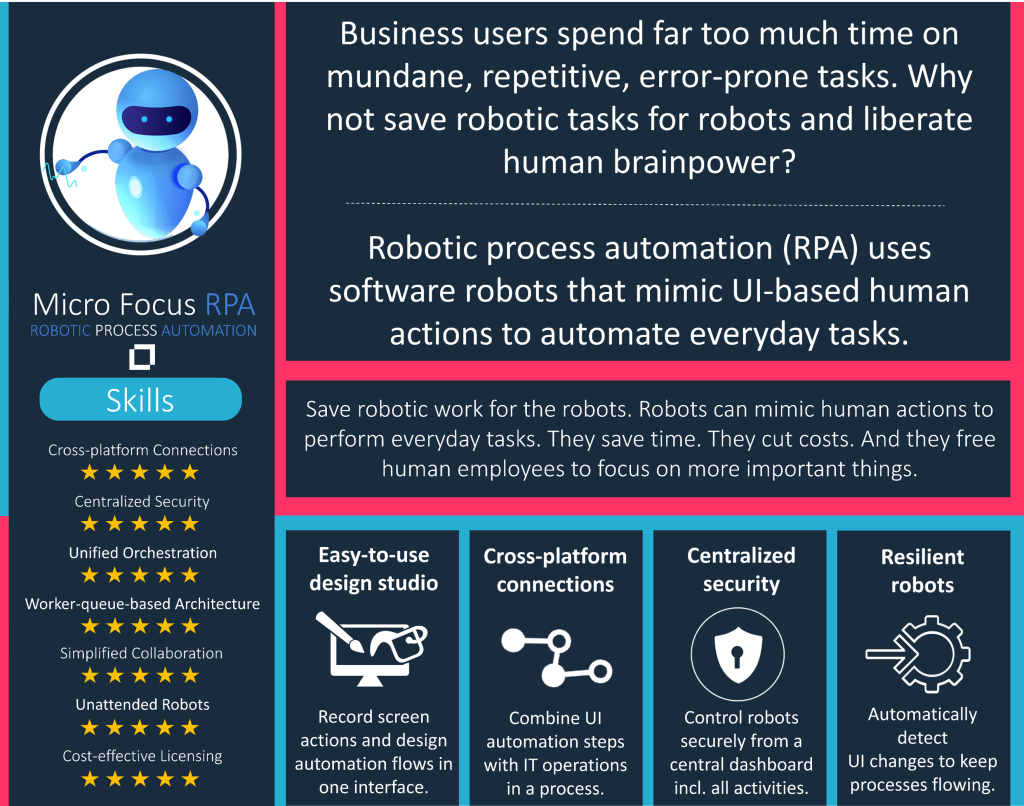 Micro Focus® #Robotic #Process #Automation (RPA) introduces a new way of doing things—giving you the power to build, secure, and scale automated business processes, from #legacy #mainframes to the latest #SaaS apps.